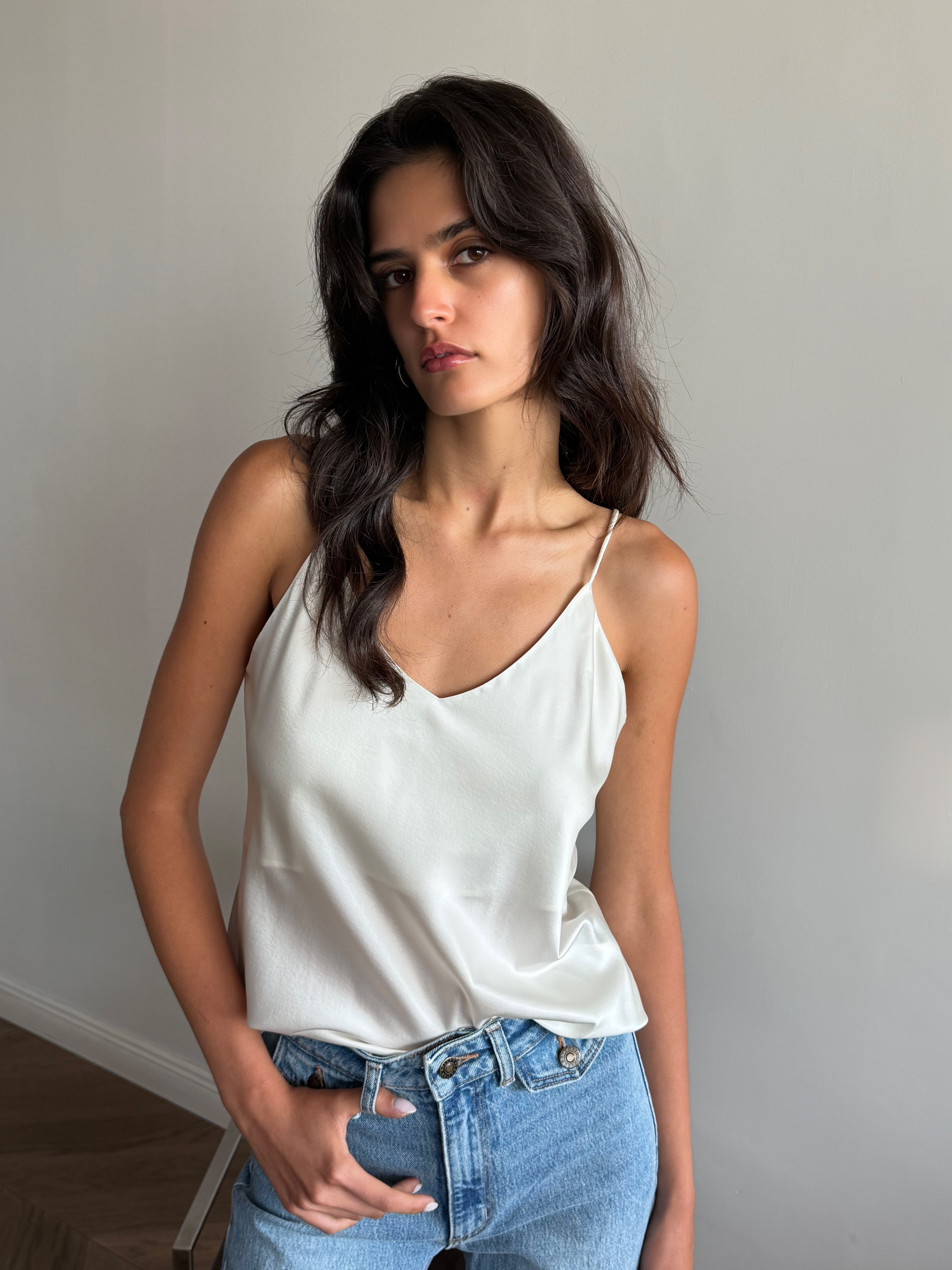 גופיית משי טהור בגזרת סלים